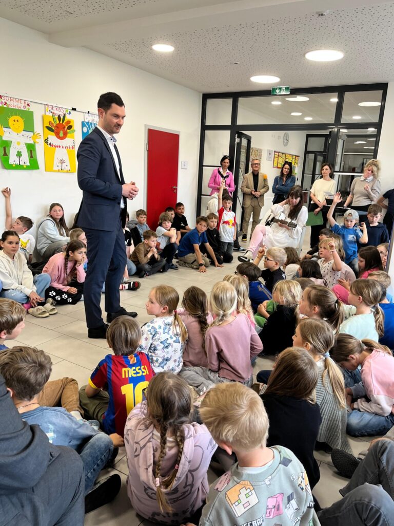 Vor einigen Tagen besuchte den Schulcampus eine namhafte Delegation aus verschiedenen Institutionen. Unter anderem der Bildungsreferent des Landes Kärnten, Herr Mag. Peter Reichmann, seitens der Gemeinde Maria Rain an der Spitze der Bgm. Franz Ragger und Vertreter vom Hilfswerk. Am Programm stand eine Besichtigung vom Bildungscampus, sowie ein netter Austausch mit den Pädagoginnen und Kindern im Campus. Wir danken dem Vzbgm. Christoph Appe für die Organisation des Besuches.