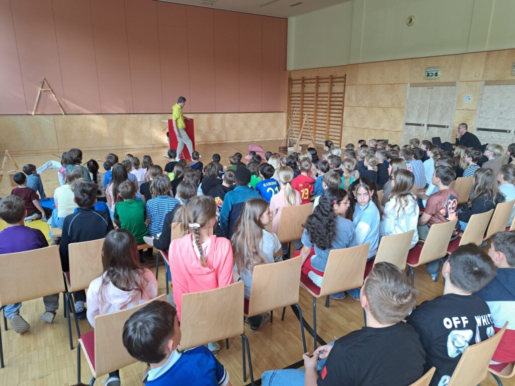 Das Stück vermittelte auf spielerische und kindgerechte Weise die Bedeutung von Freundschaft, Zusammenarbeit und Mehrsprachigkeit. Die Schülerinnen und Schüler erlebten ein abwechslungsreiches Abenteuer voller Überraschungen, Begegnungen sowie liebevoller Details wie Luftballons und Keksen.